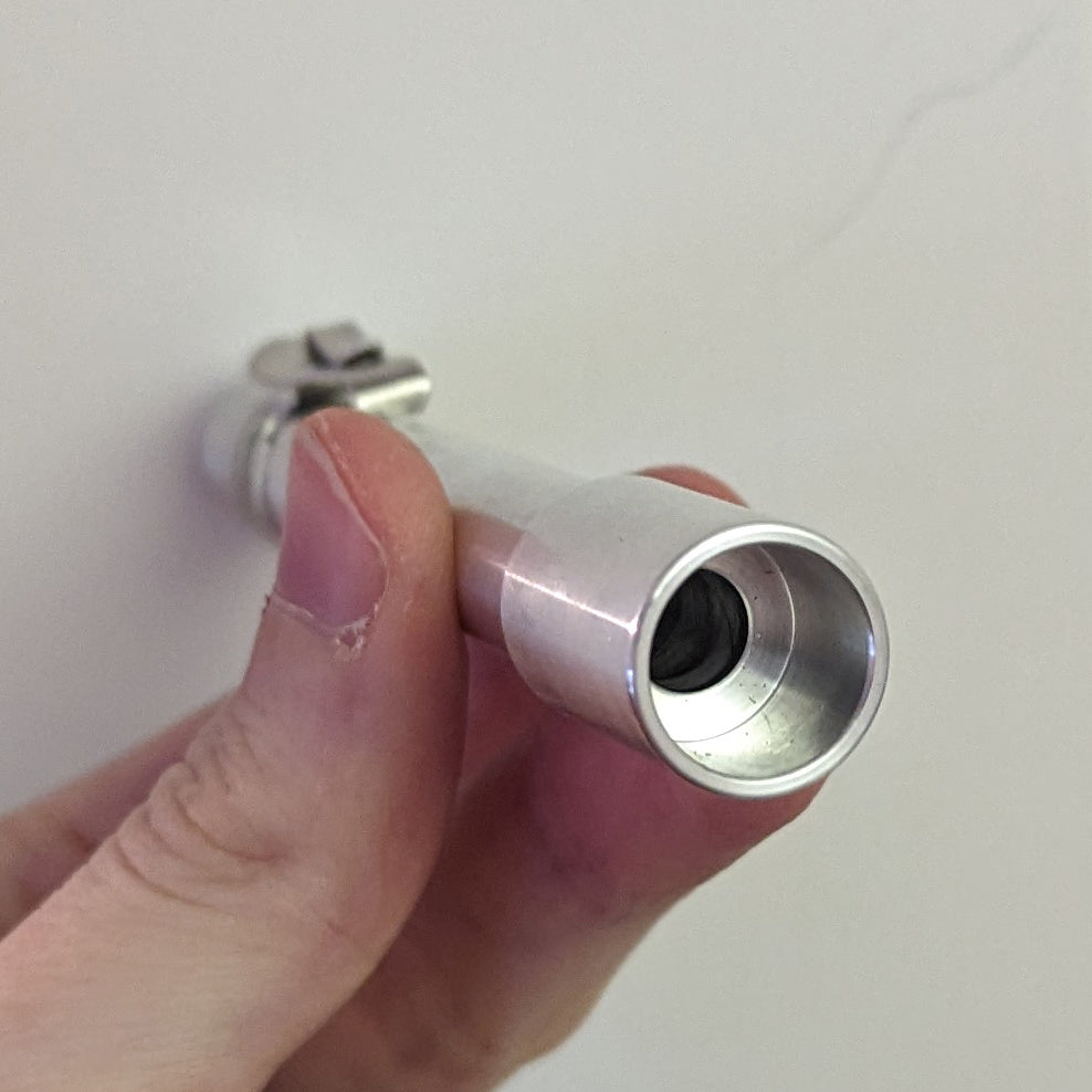 This cylinder is made to the same machined dimensions as the original dosimeters of this model. They come with a aluminum sturdy clip for attachment. Optionally they can be upgraded with a rubber end cap, and a red vinyl band to mirror the original props.